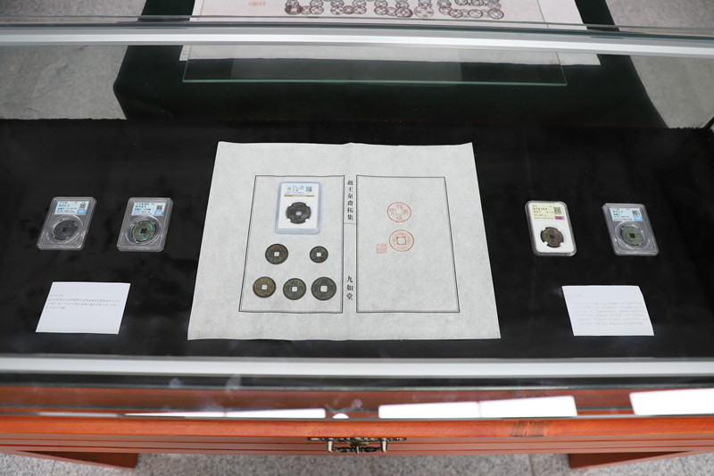 2022年11月23日,学院在图书馆举办“中国历代绘画大系”(宋画)展览活动,金余池将自己制作的《南宋钱币拓片》赠送给学院,并在图书馆二楼大厅公开展览宋代风韵为主题的《两宋钱币》拓片展。本次展览作品包括金余池精心准备的《北宋铜钱》、《南宋铜钱》以及为期近五个月完成的九叠篆《绍祚中兴》钱币传拓的锦灰堆等作品。