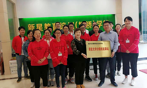 10月9日上午,学院语言文学分院与浙江掌心(新星)教育科技有限公司在掌心教育柯桥校区举行了“校友驿站”的揭牌仪式。语言文学分院负责人和浙江掌心教育李红蓉校长出席本次仪式。参与本次仪式的还有在掌心教育工作的学院优秀校友英语1204班胡红燕等。