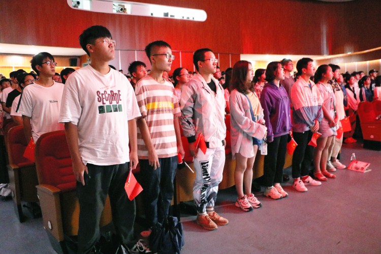 建筑工程分院师生在教学楼10幢104教室收看庆祝大会盛况