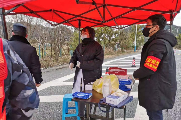 校友楼炳(右一)赴疫情一线加强巡查