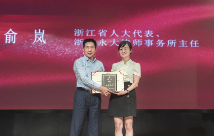 在“梁柏台法学院”客座教授聘任仪式上,名誉院长翁国民教授依次为陈理平教授、梁孟伟教授、陶建军教授、李旺荣教授、楼东平教授、虞伟庆教授、冯坚教授、俞岚教授、俞友根教授、喻文莉教授颁发聘书。法学专业1801班宋利同学代表法学院学生发言。