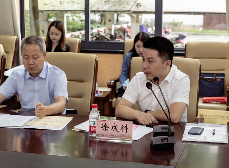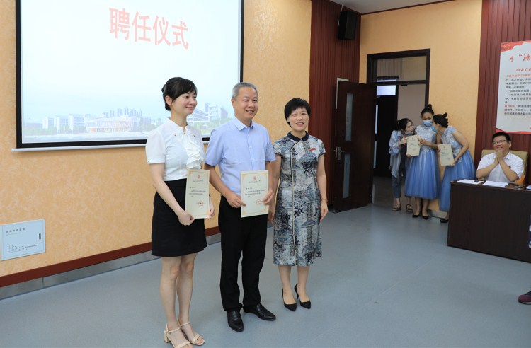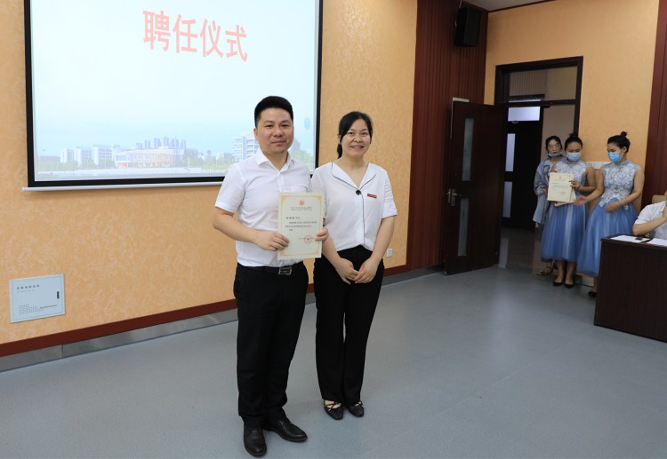 “梁柏台法学院”党总支书记陈跃男为协会会长徐成科颁发聘书