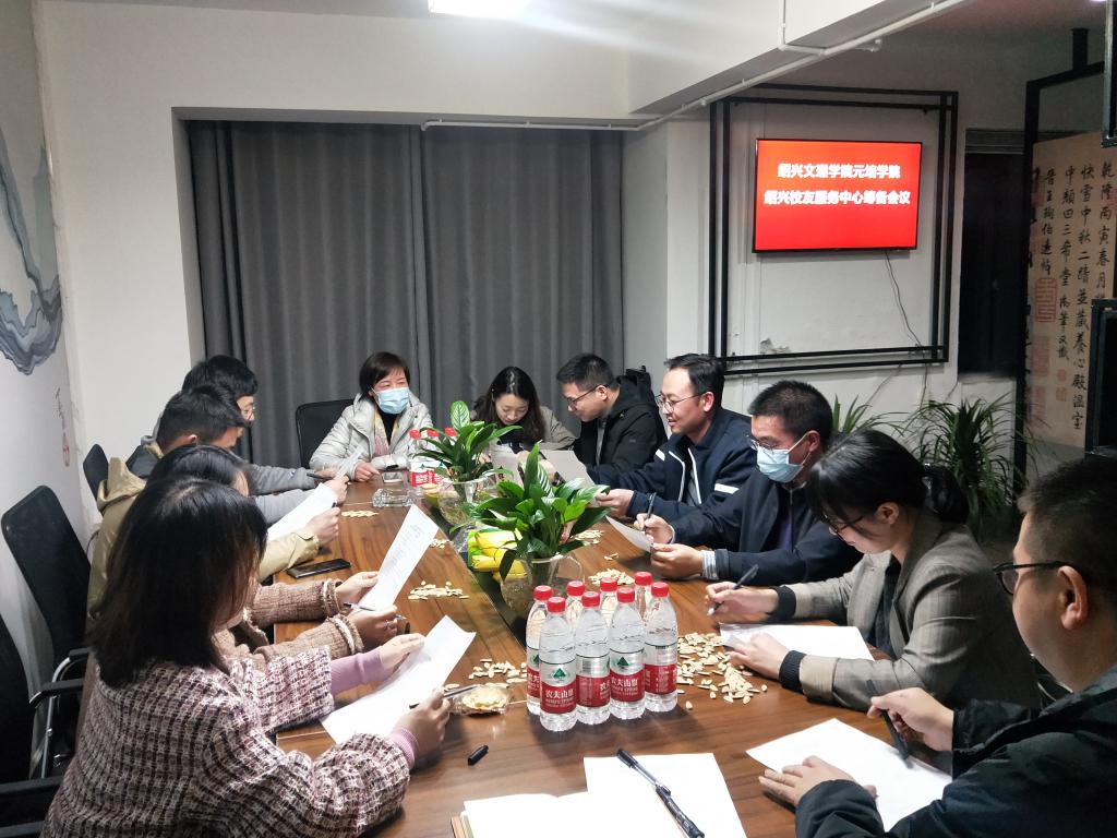 3月23日,绍兴校友服务中心筹备工作会议在校友企业绍兴海马科技公司会议室召开,学院党委委员、纪委书记俞国芬、学院校友工作领导小组办公室主任陶亦伟、语言文学分院党总支书记潘成刚、筹备组相关成员出席会议,会议由潘成刚主持。