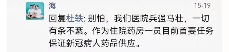 “群众需要我们!”除了这些看得见的物资捐赠,更有无数的元培人奋斗在抗“疫”的第一线。他们中有的是医务工作人员,为各地群众平安健康保驾护航;有的加入志愿者团队,为隔离居民送去必需药品、生活物品,身体力行奉献,以满足大家的需求。校友代表、药学07级的王超海说:“看到绍兴疫情的新闻后,非常担心母校的状况,因为自己在医院工作,所以对待疫情更加敏感。”他说,“希望通过校友们的一点微薄之力为母校师生做点实事,为母校增添一份防疫安全保障。”