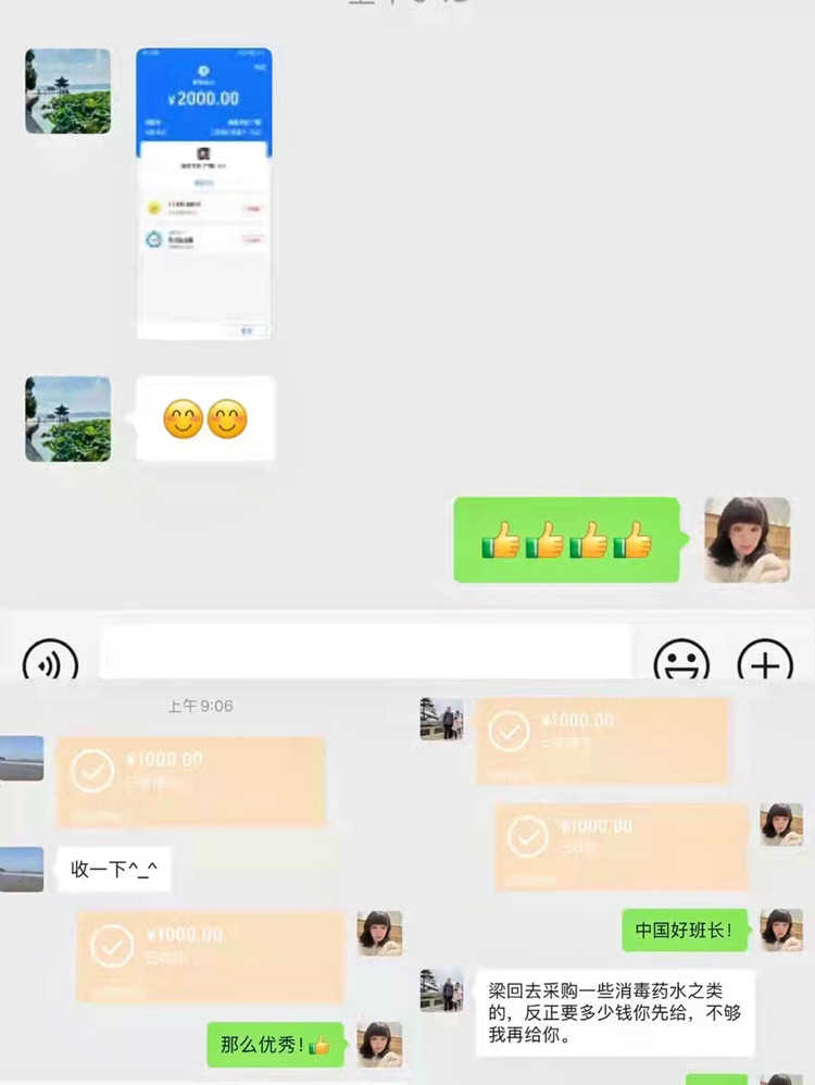 “我带头先捐!”“支持!”“消毒水、口罩都需要吧?”群内的一句句鼓励,一声声关心持续传递。巴富民负责组织调配,承雯雯负责收集捐款资金,再联系疫区当地同学进行捐赠或物资采购,联络交通运输……环环相扣,心心相牵,广大校友自发地通过各种方式和渠道,助力抗击疫情。据悉,此次募捐仍在开展阶段,目前已收到部分校友捐款,后续将联络疫区村委会进行直接捐赠或用于口罩、消毒水、体温计等易耗品的采买。杜轶君看着一条条暖心的消息,特别感慨:“毕业这么多年了,他们能主动地去关心同学以及学院的老师,并且有越来越多的学生设法来帮助大家,这份情谊让人十分感动。”