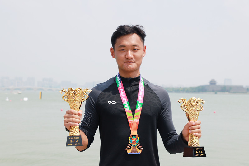 在第九届中国大学生锦标赛的赛场上,这份努力终于得到了答案。2021年7月24日,加入龙舟队的第二年,陶宇凯随队出征,学院龙舟队勇夺甲组200m直道竞速赛第三名。“为了这一次比赛,我参加了将近两个月高强度的“魔鬼”集训”,他说:“从6月份到比赛前,每天进行平均六小时以上的高强度训练。手心、脚掌无数次磨破、愈合再磨破,那时候太阳毒辣,我大概脱了三层皮。决赛那天,我的手即使再酸,也不敢垂下,一直闷头拼命划,直到冲过了终点线,才渐渐地把身体放松下来。”