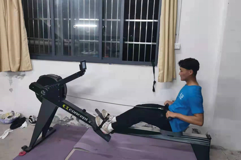 在没有进行系统体育训练的情况下,提高身体素质和跟上其他队员的训练,成了陶宇凯首先要面对和攻克的难题。为此,他每天5点50分起床,只喝几口牛奶,吃一个鸡蛋,先绕着400米的操场跑4圈,接着是俯卧撑、举哑铃等力量训练,再是在水面上进行50m、100m、200m、400m各个不同阶段的训练。“虽然我的体能在队里不突出,但这从来没有成为我偷懒或者放弃的理由。想要努力追上队友们的脚步,争取随队出征,就必须利用好每一分每一秒进行力量练习,克服障碍。”他坚定地说。