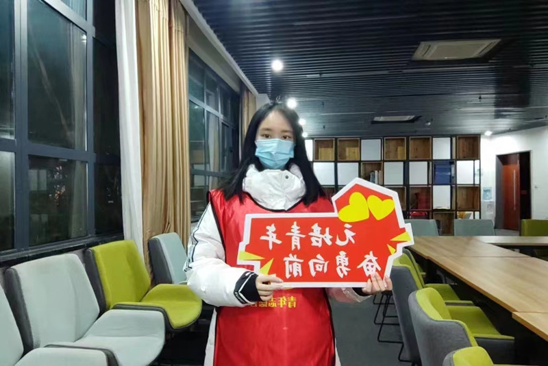 隆冬至,为确保校园食堂防疫志愿服务工作保质保量完成,应沁倪常常早晨六点左右起床,帮助志愿者搬运防疫物资,督查工作进展情况。“发放物资的同学一直没到,我们该怎么办?”工作出现失误,应沁倪立马了解情况,及时协调补救,冒着风雨将防疫物资送往食堂,确保防疫工作顺利开展。“别慌,我来解决”这六个字总是给工作中的志愿者们吃下一颗“定心丸”,大家工作起来更安心了。志愿服务中,应沁倪发现部分志愿者过于害羞,无法有效提醒师生注意防疫距离,“经充分讨论研究,我们决定让志愿者们手举标语进行提醒。”最后,一块块醒目的标语出现在食堂内,疫情防控志愿服务工作在她的安排下变得井井有条。