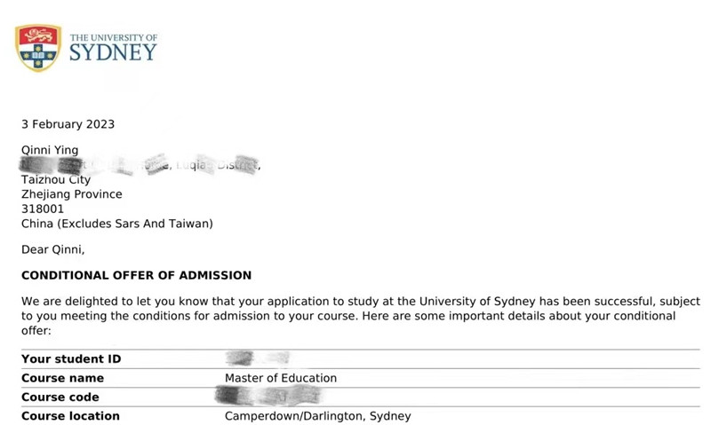 “留学申请是一个比较长的过程,从院校选择到最后顺利留学,程序比较繁琐。为了让自己有更有竞争力,我在材料收集方面花了不少精力。”应沁倪说。网申提交、寄送纸质材料、提交推荐信……她将每一个环节做到尽善尽美,最终顺利通过面试,拿到了悉尼大学的offer。“目前我正在自学教育学相关知识,希望自己能在悉尼大学继续钻研和深造。”