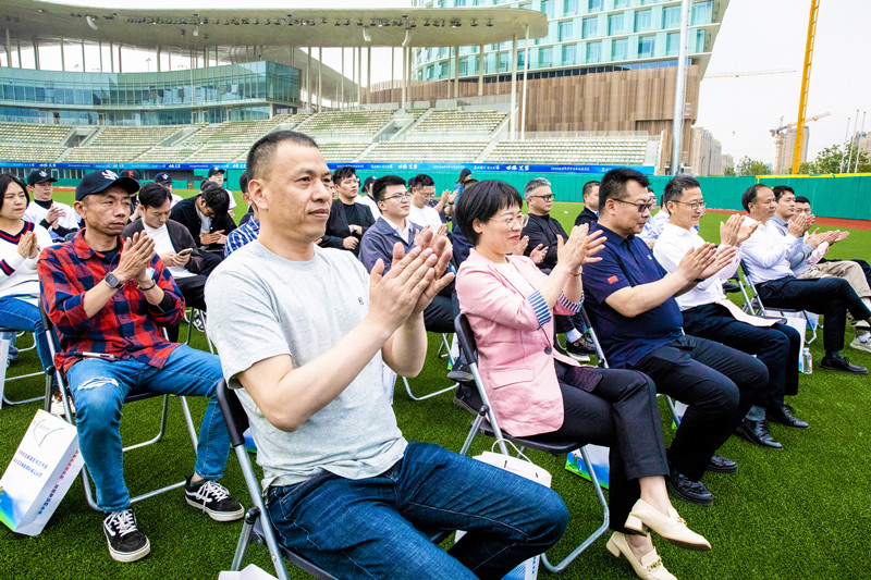 绍兴市奥体中心主任尹铁雄宣布“学院大学生棒垒球队”开棒