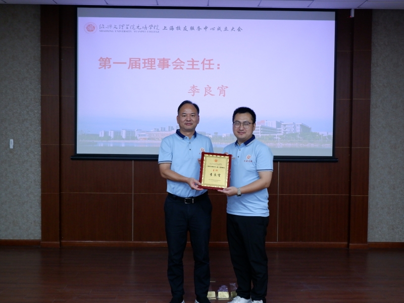 学院党委副书记石旭明为上海校友服务中心主任、校友李良宵颁发聘书