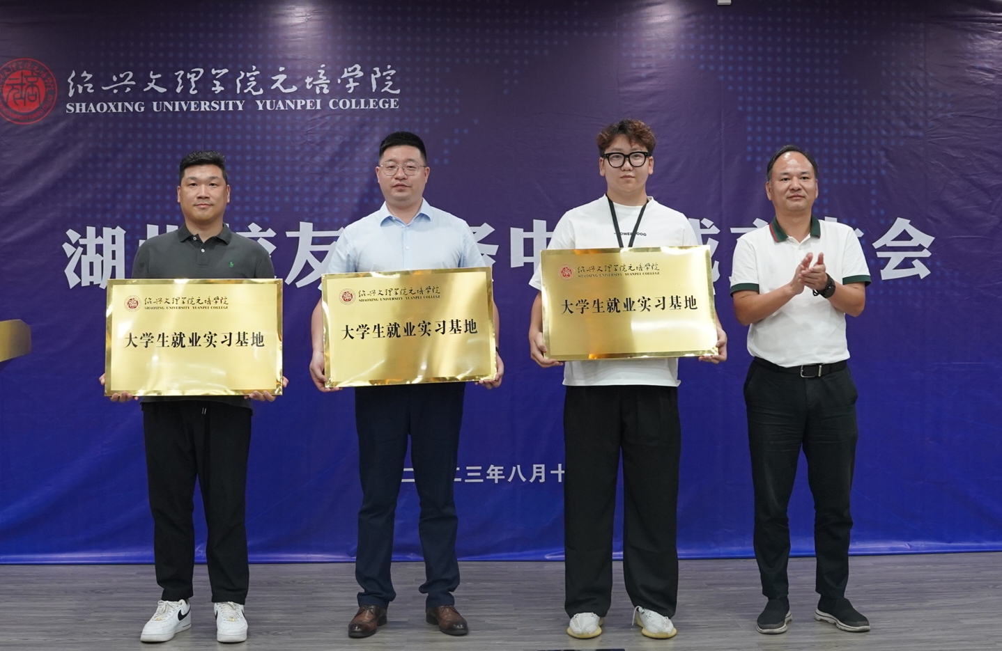学院党委副书记石旭明为校友企业大学生就业实习基地授牌