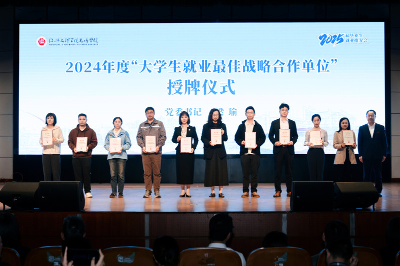 会上,梁瑜为学院2024年度“大学生就业最佳战略合作单位”授牌。