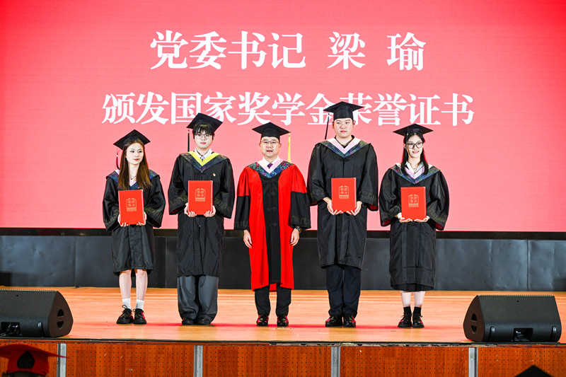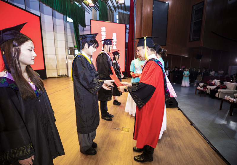 沈红卫逐一为毕业生颁授学位、拨穗正冠,与他们亲切握手、合影留念,共同见证与分享同学们圆满完成学业的幸福与喜悦。