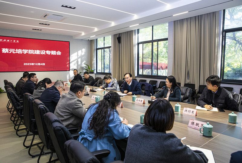 在随后召开的专题工作会议上,校长张宏详细阐述了蔡元培学院办学定位与发展方向,并提出三点要求。他强调,蔡元培学院要勇担教育改革“试验田”使命,以高等教育与人才成长规律为指引,在课程体系、教学模式、评价机制等方面创新突破;学校各职能部门、二级学院要树立“一盘棋”思想,畅通资源配置渠道,构建协同联动、高效赋能的保障体系;学院教师要厚植教育家精神,潜心育人、追求卓越,在传授知识的同时启迪智慧、塑造灵魂。张宏表示,全校上下要悉心呵护、合力托举,全力把蔡元培学院打造成学校人才培养的示范窗口与标志性品牌,为绍兴经济社会高质量发展培育更多高素质拔尖创新人才。