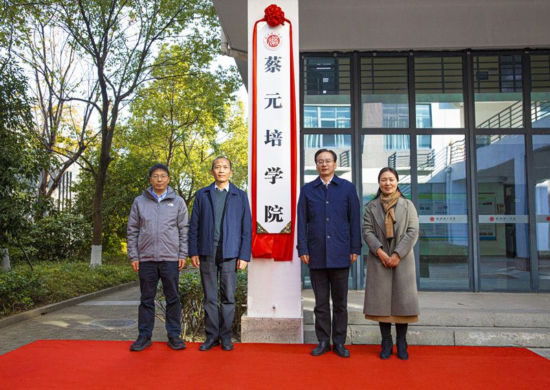 赓续元培文脉,培育拔尖英才。12月4日下午,绍兴理工学院蔡元培学院成立大会暨揭牌仪式在1号教学楼隆重举行。校党委书记高建国、校长张宏、副校长方泽波与蔡元培学院常务副院长刘雄英共同为学院揭牌,标志着这所秉承蔡元培先生“思想自由、兼容并包”教育理念的荣誉学院正式成立。此举是学校发展历程中的重要里程碑,也是学校构建荣誉教育平台、培养拔尖创新人才的一项创新实践。